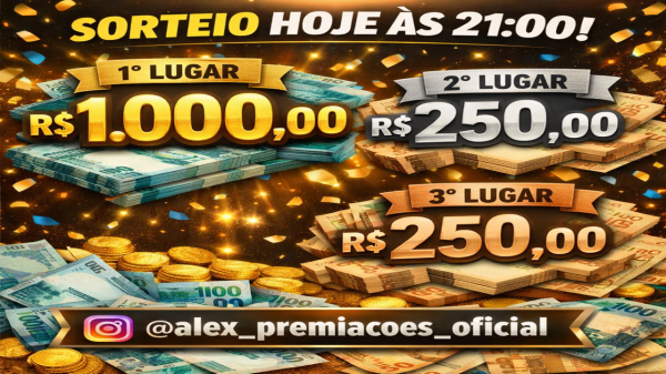sorteio hoje as 21:00 pelo sorteador !